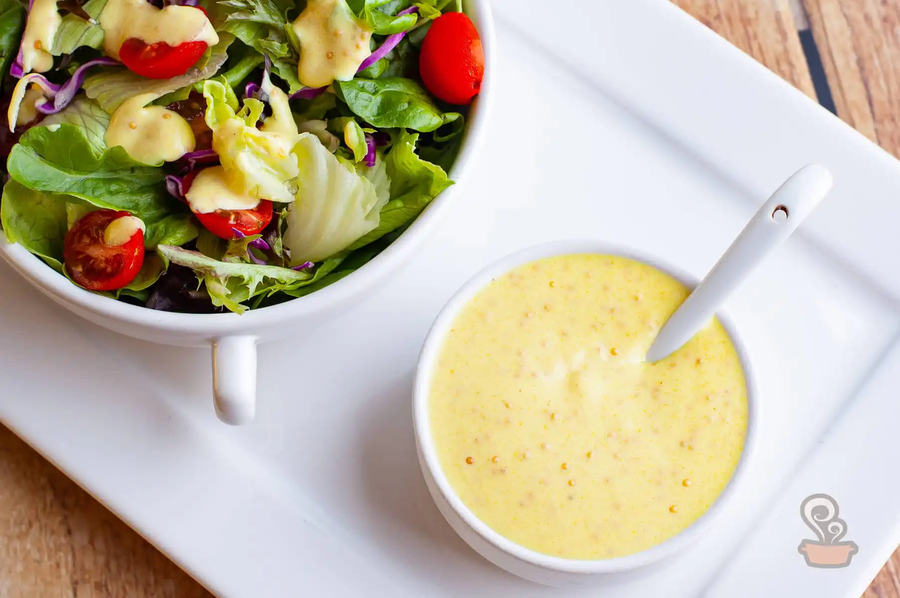 É provável que esse molho de iogurte e mostarda se torna uma das opções favoritas no dia a dia. Seja para temperar a salada, como para acompanhar outros preparos (frango, carne e até mesmo bolinhos…